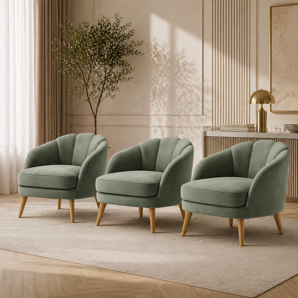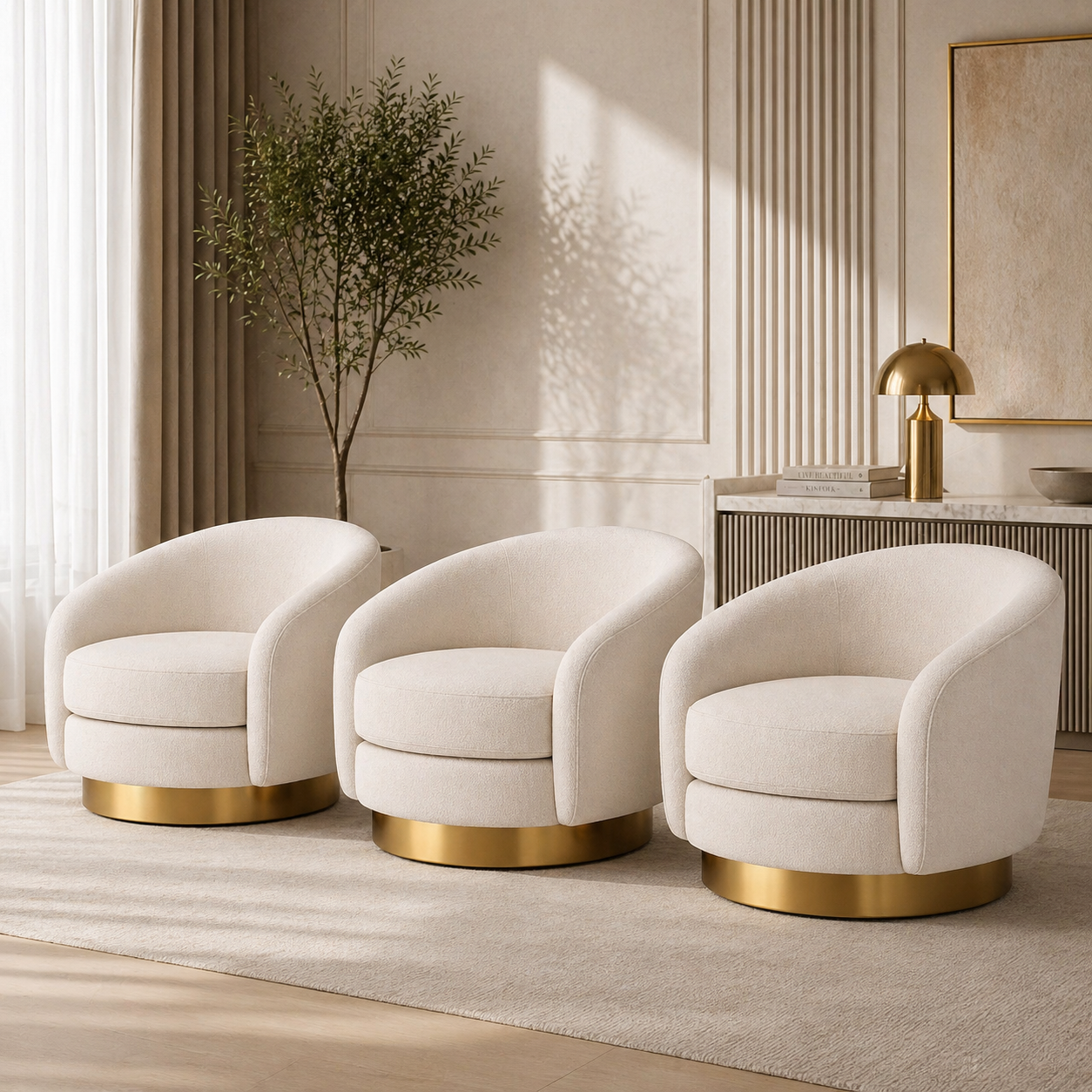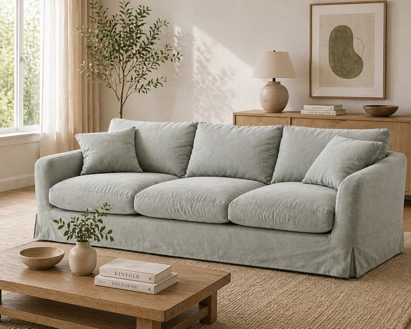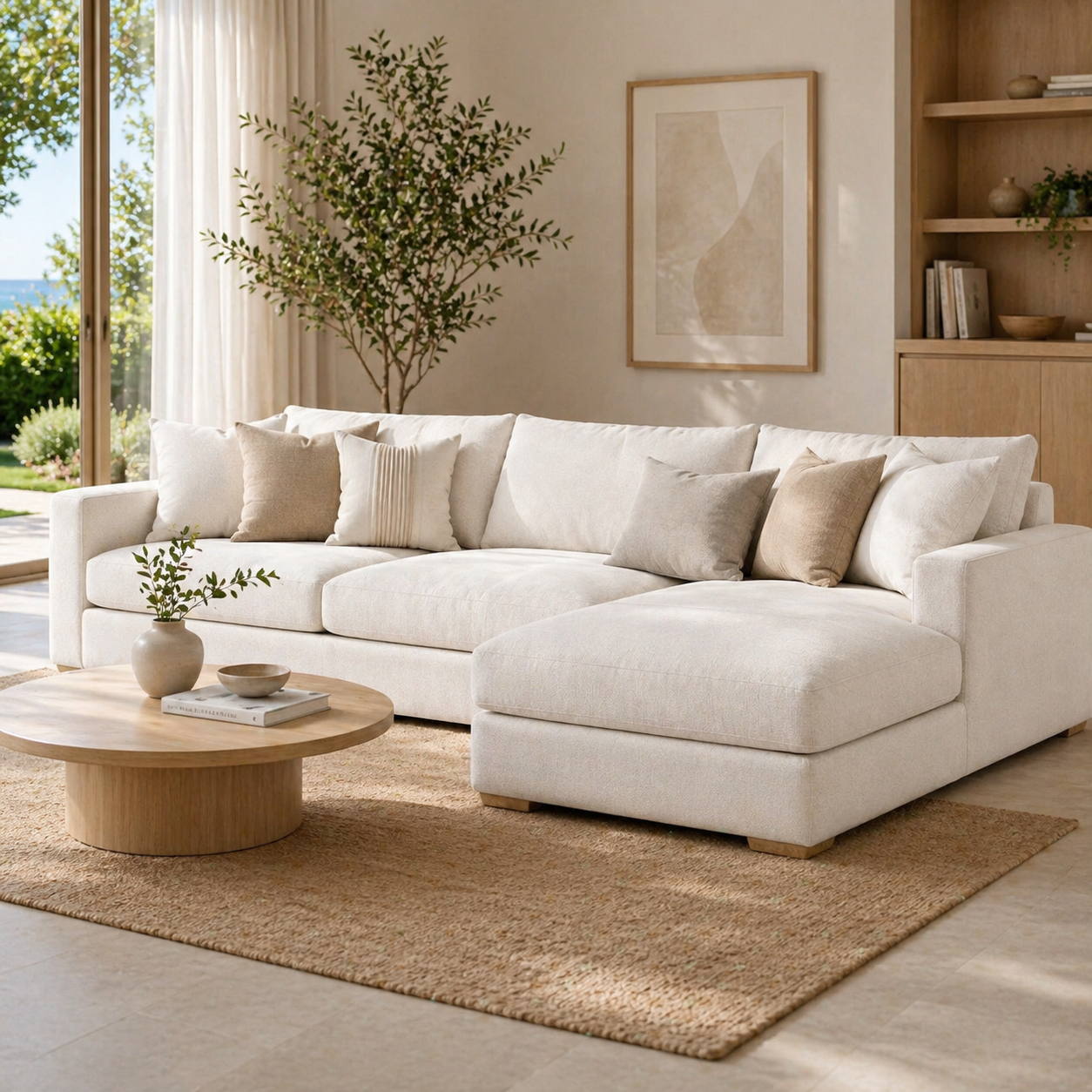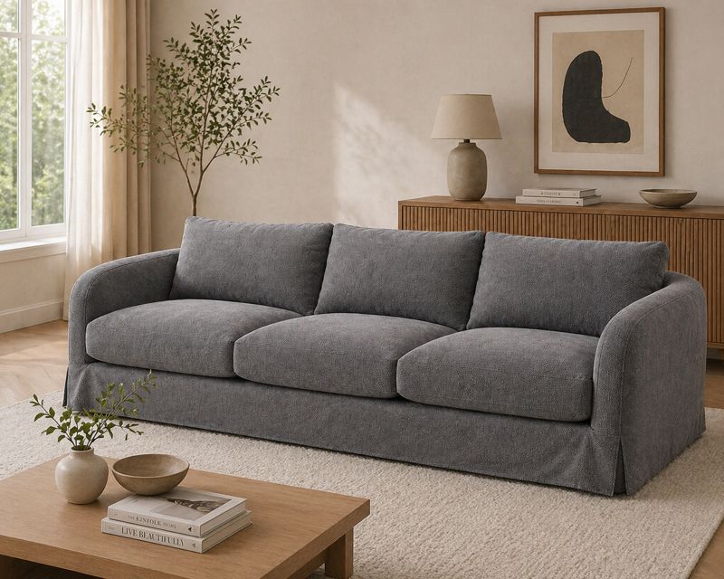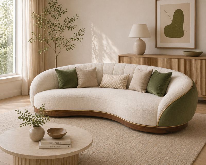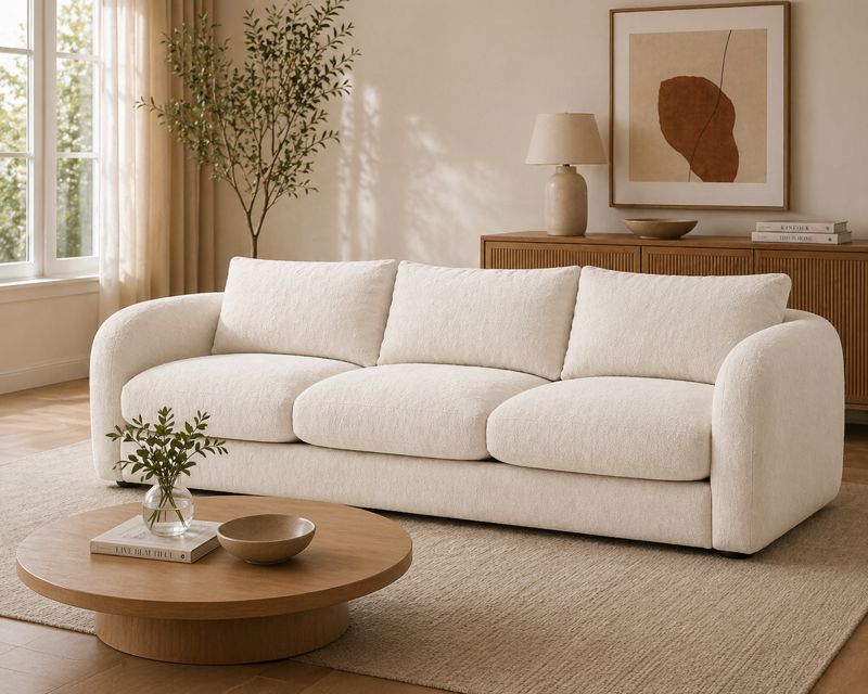 Sa forme arrondie et généreuse se caractérise par des lignes douces et sans angles vifs. La palette de couleurs blanc crème/blanc cassé reflète la tendance actuelle du style « crème ». Le coussin d'assise en trois parties et les trois dossiers créent un effet visuel équilibré et structuré. Les larges accoudoirs sont à la fois esthétiques et contribuent au confort.